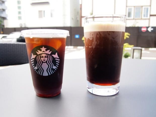 既に発売されている、コールドブリューコーヒー(写真左)と比較してみました。こちらはすっきりとした味わい。それに対して、ナイトロコールドブリューコーヒーは非常にまろやか。同じ豆を使った水出しコーヒーから、対照的な味が生まれることに、驚き! 個人的に、コールドブリューコーヒーは仕事中など気分をすっきりとさせたいときに飲み、ナイトロコールドブリューコーヒーは夜や休日など、リラックスタイムにじっくりと味わいたいと感じました。