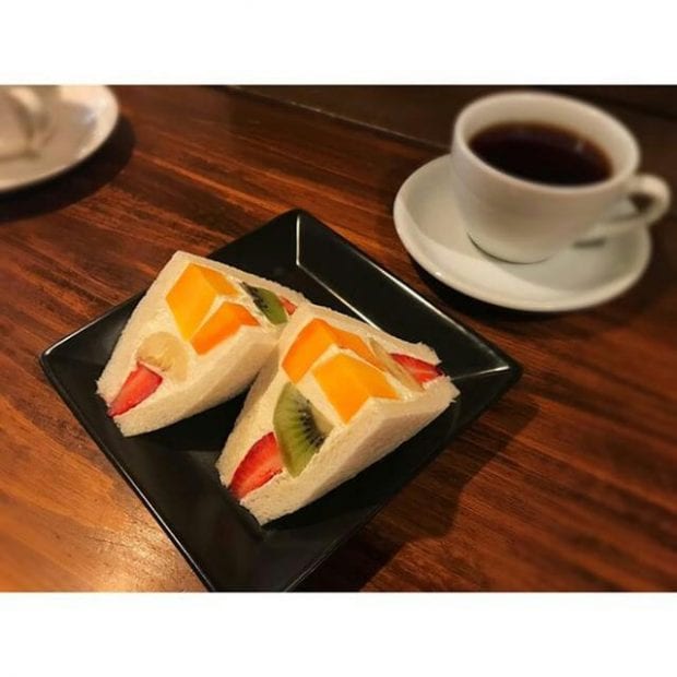 こちらは東京・代官山にある「珈琲日記」というカフェのフルーツサンド。ぷっくりとした三角形の断面からのぞく色とりどりのフルーツがなんともキュートで、売り切れる日も珍しくないとか。このほかサイフォンで淹れる自家焙煎コーヒーなどが楽しめるお店です。