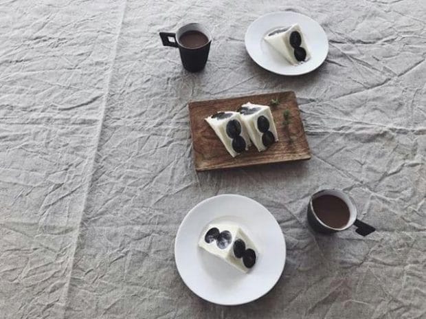 まんまるブドウがまるでドット柄のような断面! 色違いのブドウを並べたことでかわいらしさが倍増です。こちらは生クリームではなくヨーグルトとクリームチーズでサンドしているとのこと。ほのかな酸味がフルーツに合いそうですね♪