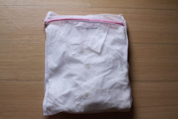 そのときに30 cm×33cm 程度の洗濯ネットに、シャツを丁寧にたたんで入れてから洗うとなおよし。