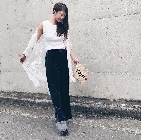 絶妙な丈感やシルエットなど、こなれ感が出る工夫がたくさんされているユニクロのベロアワイドパンツ。皆さん夏物と上手に合わせているのが印象的でした。このパンツがあれば、今時期から秋までを乗り越えられそうです。ワードローブに加えてみては?