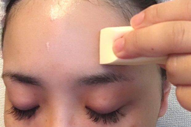 触り心地はモチモチ。そして肌に触れるとひんやり。伸びもかなり良い! いろいろな角度で試してみましたが、額などの広い部分も目のキワなどの細かい部分も、ハウスの斜めの面を使うのが塗りやすかったです。