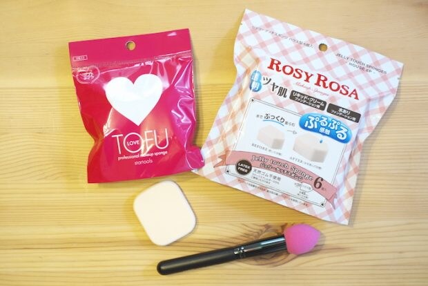 試すのはスタンダードな四角形のパフや、ちょっと変わったハウス型スポンジなどの4種類。