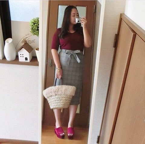 ボルドーとチェックスカートで、いち早くこの秋のトレンドを先取りゲット!