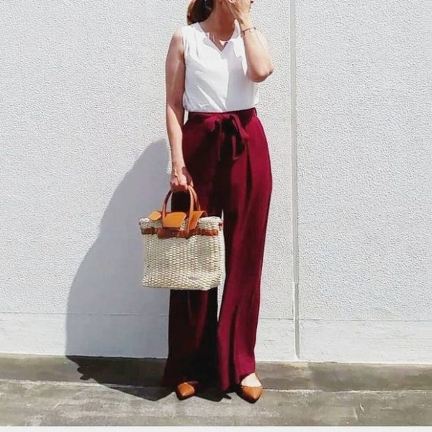 無難な色を選びがちなボトムスもワインカラーにチェンジすれば、フェミニンな秋の着こなしが可能!