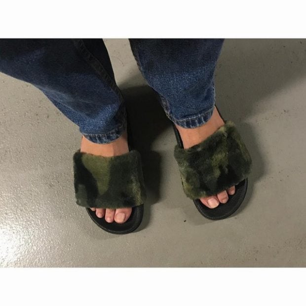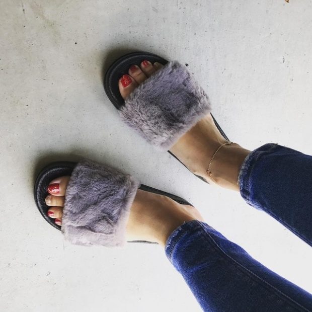 足元が重くなるのが苦手な人はグレーがオススメ! スリコのファーサンダルはプチプラながら、肌触りがとってもGOOD。寒くなってきたら靴下やタイツを履けばロングシーズン活躍しそう!!