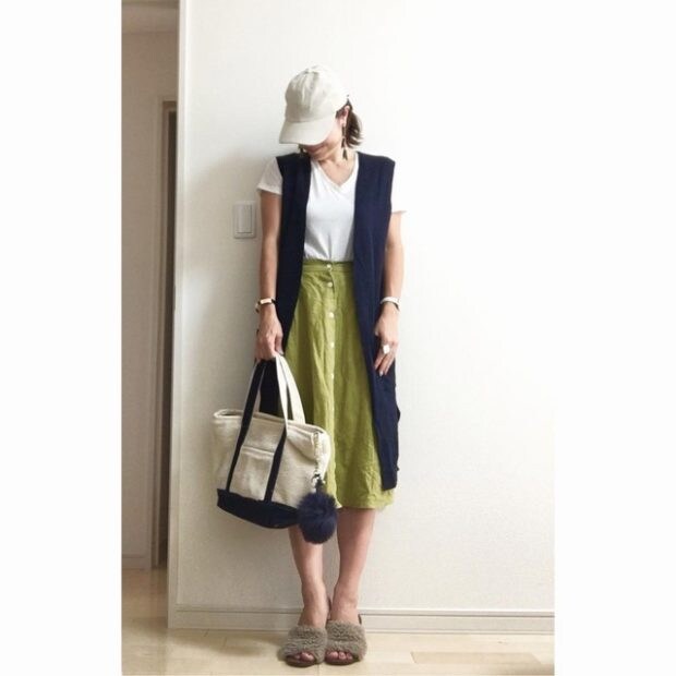 スカートスタイルにも合うんです! きれいめカジュアルなコーデに被るだけでちょっぴりアクティブな印象になりますね。ファーサンダルやファー小物で秋らしさをさらに加速させてみて。お出かけが楽しくなっちゃいそう。