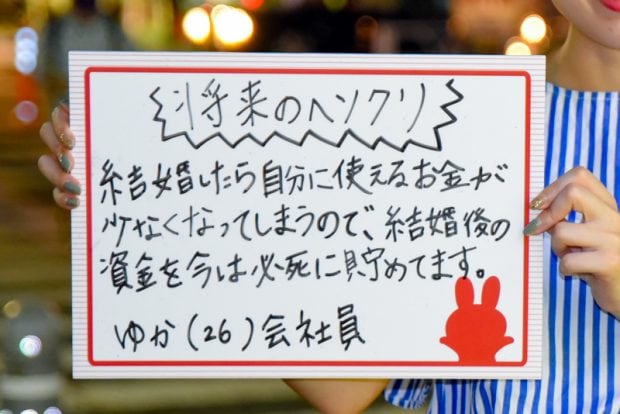 ゆかちゃん:だって、結婚したら稼いだお金は夫婦のものになっちゃって、自分で自由に使えるお金がなくなってしまうじゃないですか。結婚式とか出産・育児もお金がかかりますし、心配なことだらけですよ……。結婚って幸せなことだと思うんですけど、それと引き換えに自由なお金がなくなってしまうのが心配なんです。