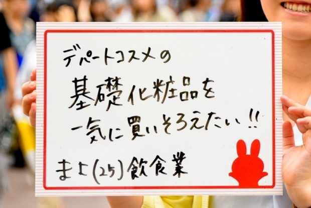 まよちゃん:私いつもドラッグストアで化粧品を買ってるんですけど、25歳にもなったし、もっと見た目に気を使わなきゃって思ったんですよ。10万円あったらデパートコスメデビューして、まずは基礎化粧品をばっちり買い揃えたいですね。