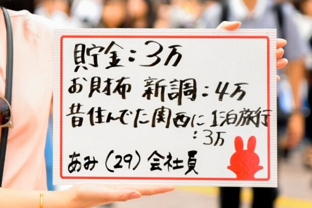「貯金:3万 お財布新調:4万 昔住んでた関西に1泊旅行:3万」