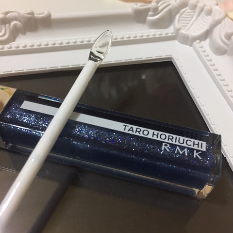 今回筆者が使用したのは、この秋RMKから発売されたリップジェリーグロス「TH-01 ワンダーブルー」。ブルーのグロスブームの火付け役でもあるブランドのものですが、この秋のものは少し深めの青に、キラキラと輝くラメが印象的な1本です。早速使ってみましょう。