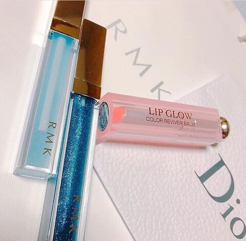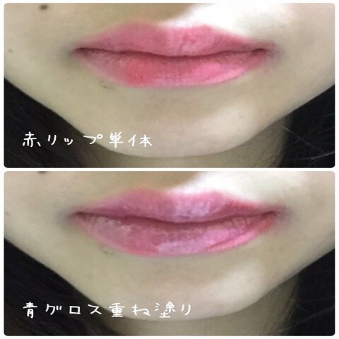 こちらはLBコスメのもの。透明グロスではなくブルーのグロスを加えることにより、黄みを和らげてくれたり、赤リップの強い赤みを程よく調整可能に。