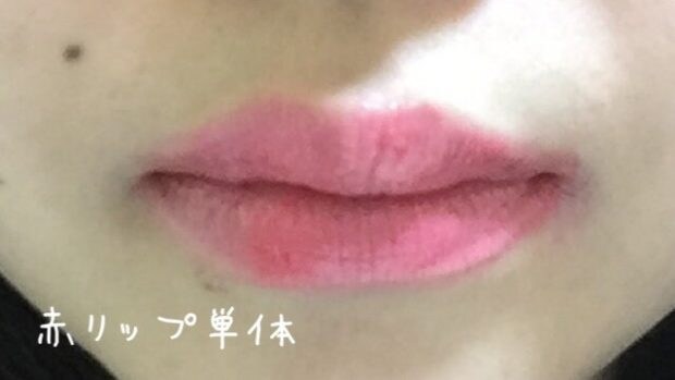 グロスなので唇がふっくら見えるのはもちろんのこと、青色が重なったことで色に深みが増した気がします。店員さんによると、「赤リップは、バーガンディなど濃いめの赤を使うことでより色の変化がわかりやすくなる」とのことでした。