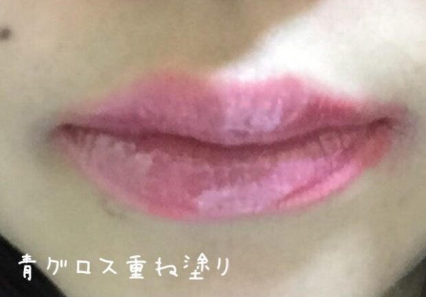青グロスを重ねると、うっすらと青みのある唇に変化。