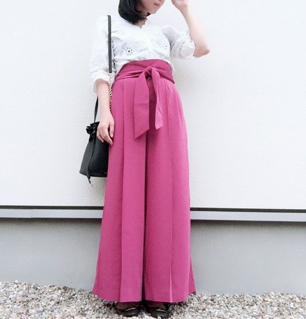 ハイウエストパンツもスカートに見えるほどのボリューム感で、周りの子と差を付けて。思い切って華やかなピンクを選ぶことで、オシャレ度もブチ上げ!