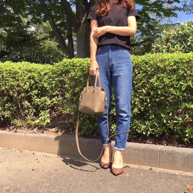 ブラックのEZYジーンズはさらなる美脚効果がありそうです! スニーカーで合わせてもカジュアルになりすぎず、大人っぽい雰囲気です。