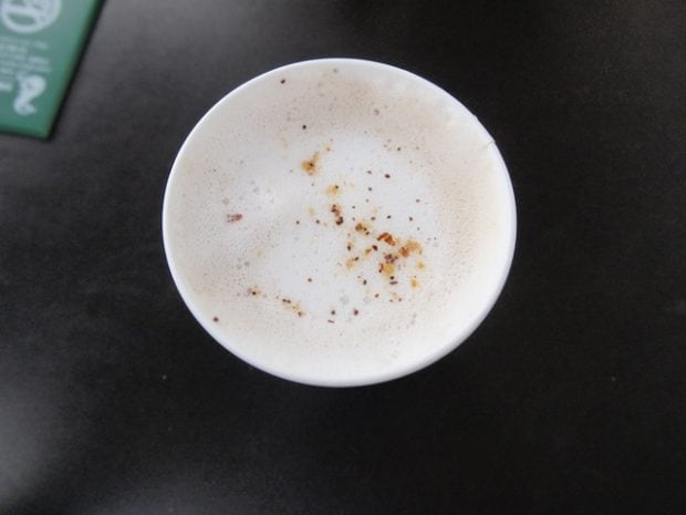 寒くなるこれからの時期におすすめなのが、「ナッティ アーモンド ミルク ラテ」。エスプレッソとアーモンドミルクを組み合わせたラテです。取材時は気温が落ち込んだ為、ホットに。アイスでも注文可能です。