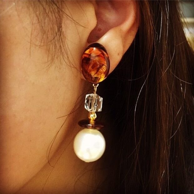 この秋冬トレンドの、ヴィンテージライクなコーデにぴったりのピアス。レトロな色合い が、秋ムードを高めてくれます。
