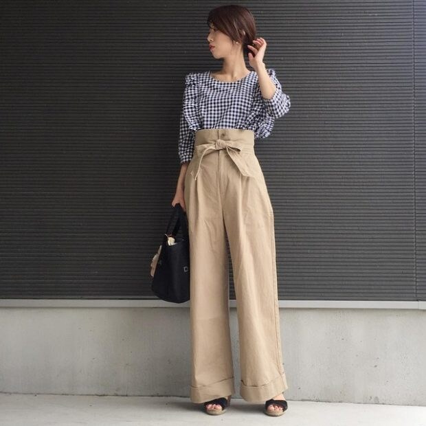 ハイウエスト、ウエストマークリボン、ワイド丈とトレンドを全部詰め込んだデザインが魅力的なボトムス。シンプルなトップスとの相性も良いですが、デザイン性のあるトップスを合わせることで、ワンランク上のコーディネートになりますよ。