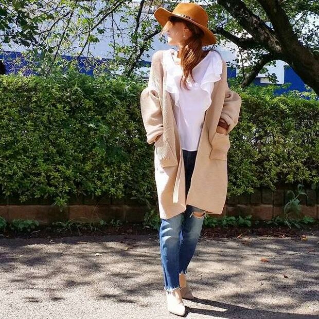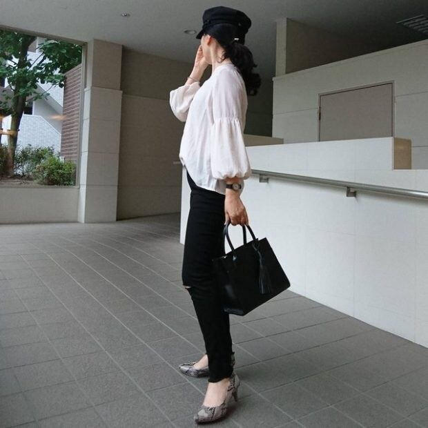 持っておくと便利なカーディガンもバルーンスリーブのチョイスで、旬なスタイリングになりますね。パンツに合わせればリラックス感のあるコーデの完成。シンプルながら、今っぽさを感じるコーデがたまらない!