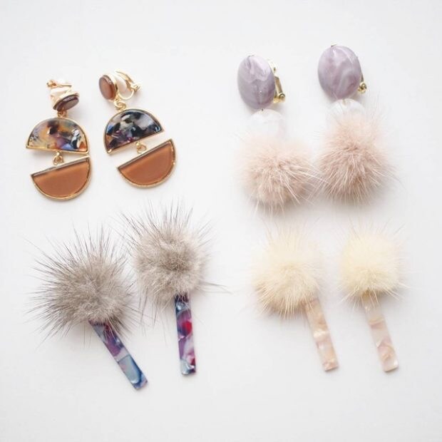 季節感が演出できるファーの付いたアクセもゲットできますよ。落ち着いた色合いのアクセで、秋冬コーデを彩って。