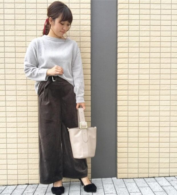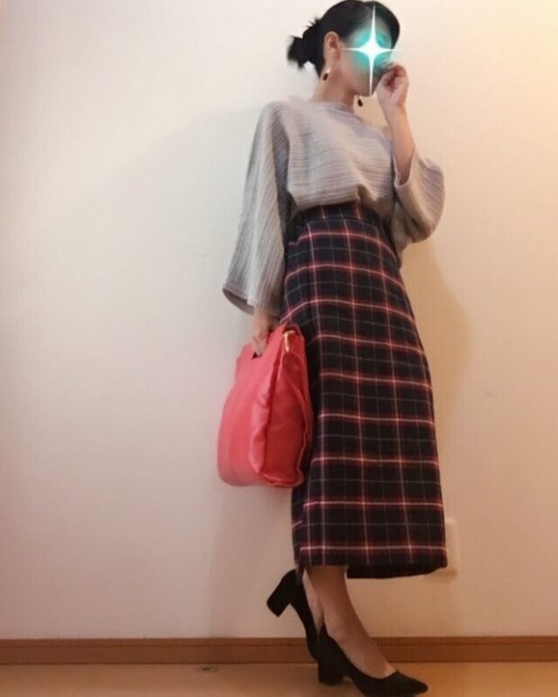 ドルマンスリーブでゆるっと着られるワイドスリーブボクシーセーター。すっきりしたスカートのチョイスで、楽チンなのにきちんと感もあるコーデになりますね。
