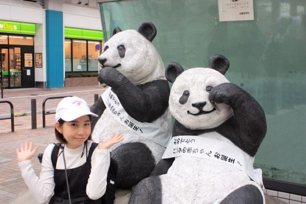 電車を降りてすぐにたくさんのパンダと出会えたことで、少し気分が上がってきました!