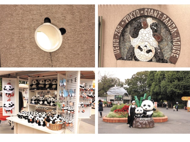 園内もパンダモチーフがたくさんあり、またお土産の売り場にはパンダグッズがずらり。