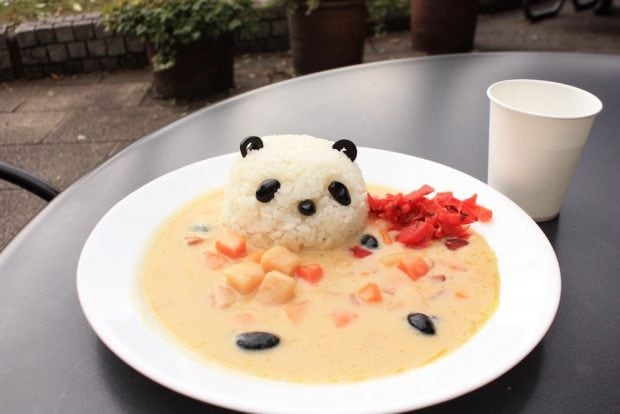 「パンダdeカレー」(830円)。ご飯に黒豆とブラックオリーブで顔を作っただけですが、キュートですよね。辛さが抑えられているのでお子様でも安心して食べられそう。他にも「オムライスdeパンダ」、「カフェラテdeパンダ」などのパンダメニューが用意されています。