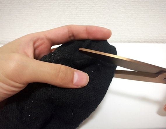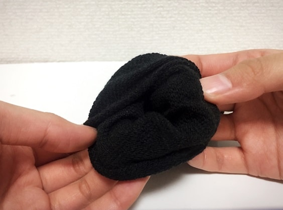 あとは筒状になった靴下を、くるくると巻いていって……。