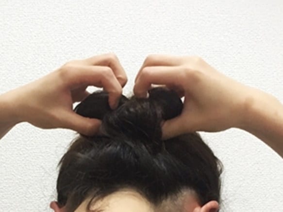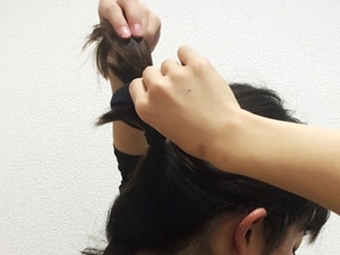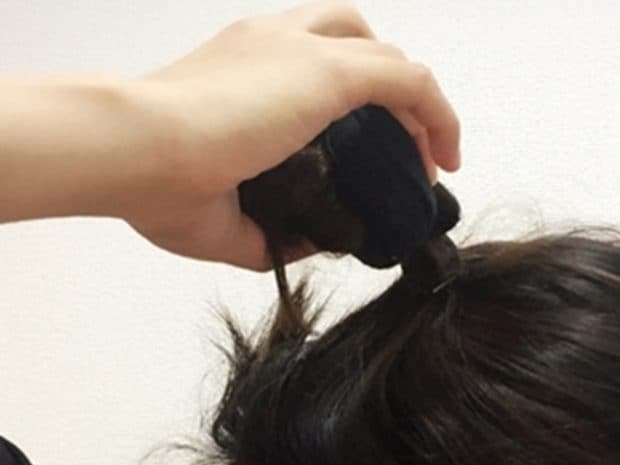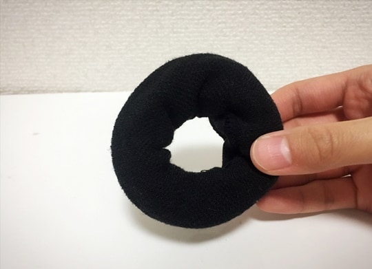 あとは、ドーナツの穴の部分にポニーテールを通して……