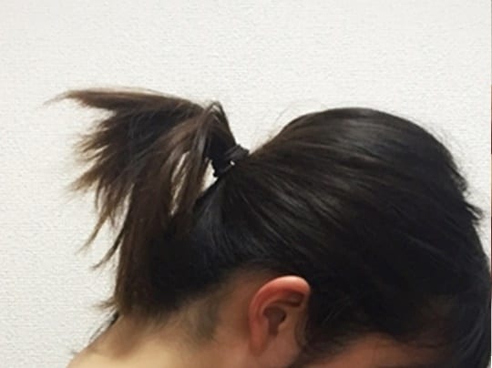 筆者の髪の長さでは、この位置が限界でした。この時点で少し不安……。