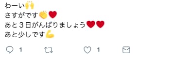 ダイエットアカウント仲間がTwitterで励まし続けてくれたおかげもあって、なんとか乗り切り、