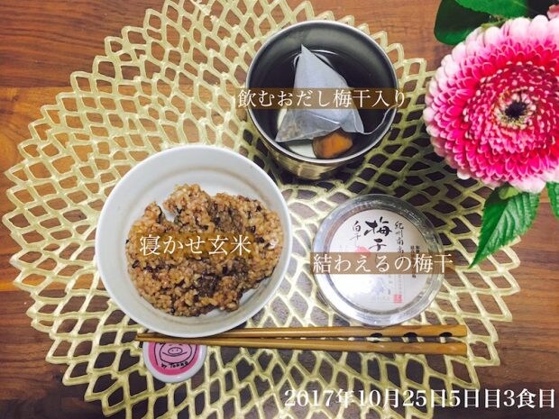 寝かせ玄米(モッチモチ!)に変えてみたり、梅干しを添えてみたり。思いの外、楽しみながら続けられました。ただし、本当にツライのは……