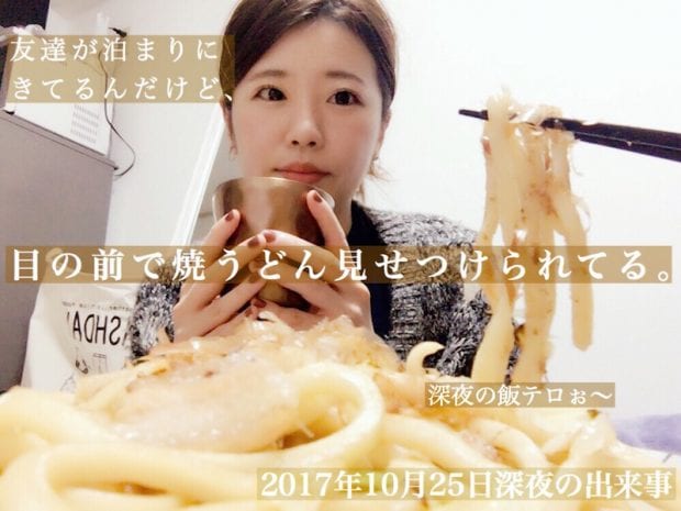 筆者宅に泊まりに来た友人が、真夜中焼うどんをすするという残酷な仕打ちも受けました。