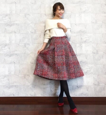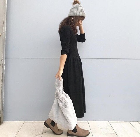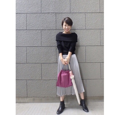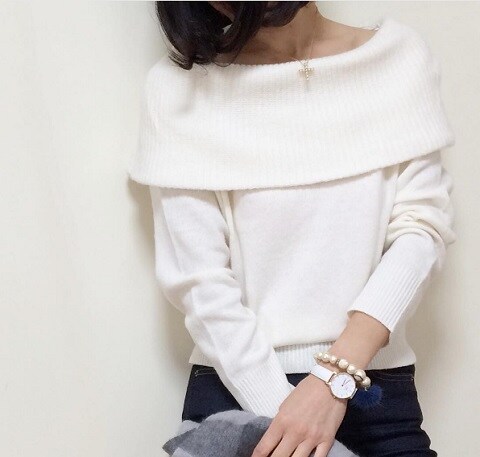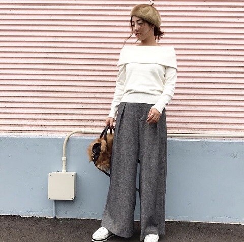 夏から流行のオフショルダーは、秋冬も引き続き人気。ふわふわしている質感は思わず触りたくなっちゃう♪