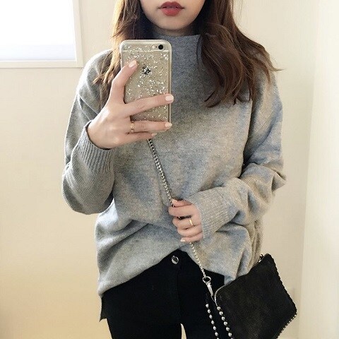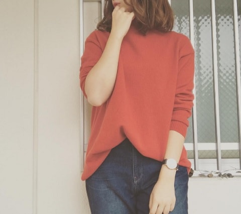 ゆるっとしたシルエットのニットはスキニージーンズに合わせるとメリハリが生まれます。