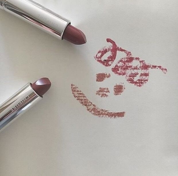 #549のレッド系パープルと、#748のブラウン系の2色使いで、落ち着いた口元に。