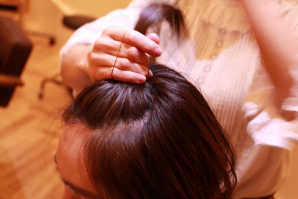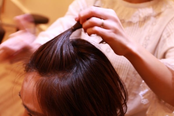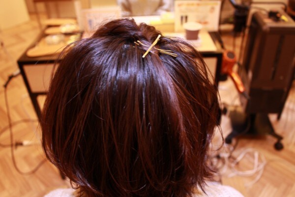 この時、こんな風に髪を円形にとると、見栄えもキレイにまとめることができますよ!