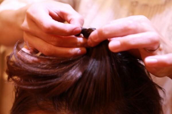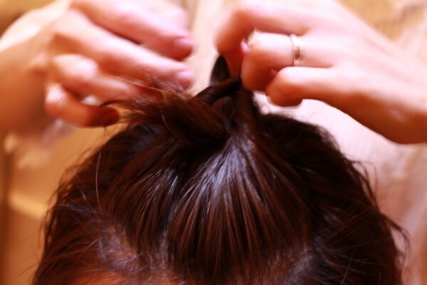シンプルな方法ですが、ただアップにするのとは違ったボリュームが出て、アレンジ感が増しますね。