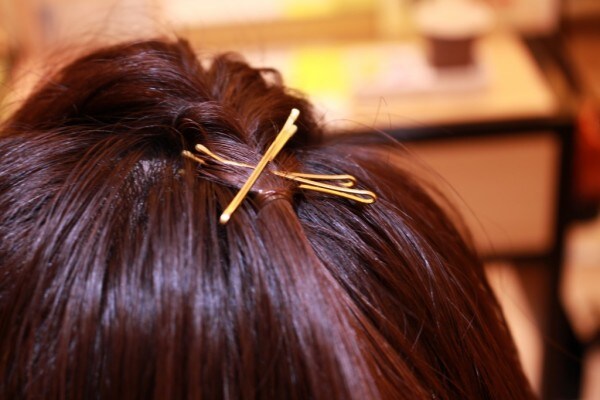 「結び目が気になる」「せっかくならきっちりお出かけモードにしたい」なんて人はヘアピンをつけてみましょう。