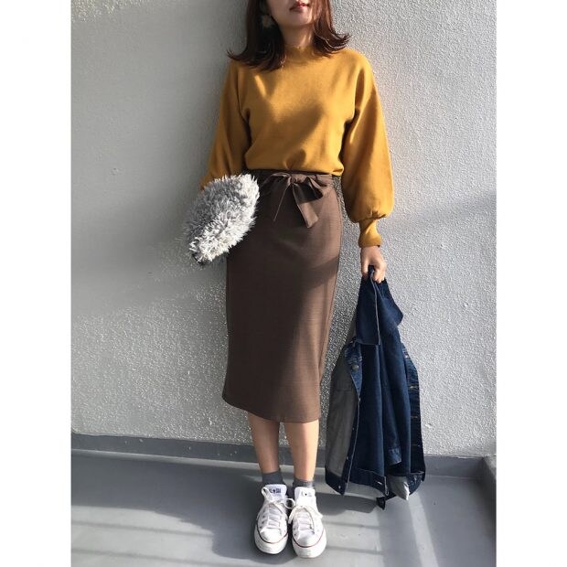 女性らしいスタイルを叶えてくれるロングタイトスカート。足元はローブーツやミュール、ローカットなスニーカーとの相性が良く、足がキレイに見えますよ。ウエストをインするキレイ目コーデが主流のようですが、オーバーサイズなニットでゆるっと着るのも魅力的。どのアイテムも2,000円程度で手に入ってしまいます。ぜひあなたもGUでゲットしてみてはいかが?