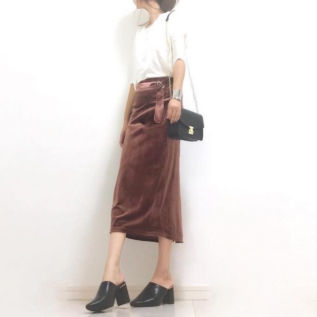 秋冬大活躍な「ベロアタイトスカート」も登場! ベロアの光沢が高級感のある雰囲気に仕上げてくれていますよね。無地だけじゃなく、花柄のベロアタイトスカートも登場しているので、要チェックです! 価格は1,990円(税抜)です。