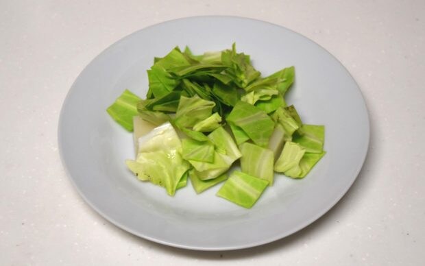 キャベツを1cm程度の大きさに切り、お餅の上に被せるようにしておきます。このまま電子レンジで1分加熱します。