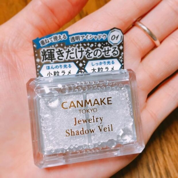 2017年夏にキャンメイクから発売された「ジュエリーシャドウベール」。色ではなく、ラメの輝きだけをのせるという今までありそうでなかった透明アイシャドウです。輝きだけなので、キラキラレベルはそのへんのアイシャドウには負けません!