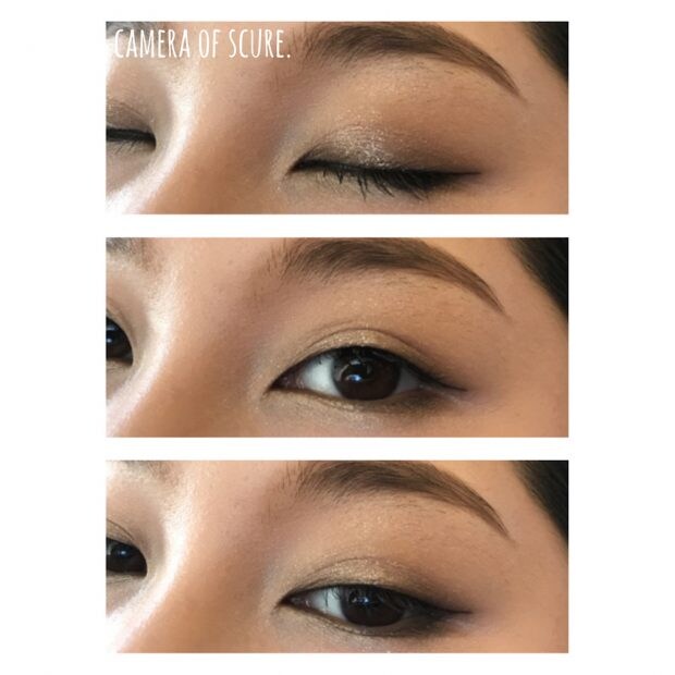 こちらの方は、ブラウンのアイシャドウに「ロマンチックゴールド」を重ね付け。同系統の色味を合わせることによって、目がより一層パッチリとしています。