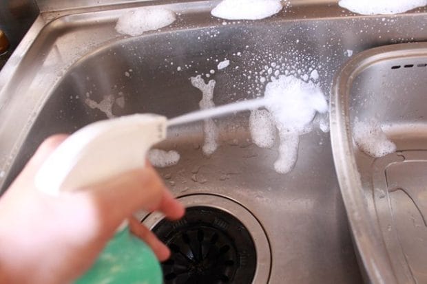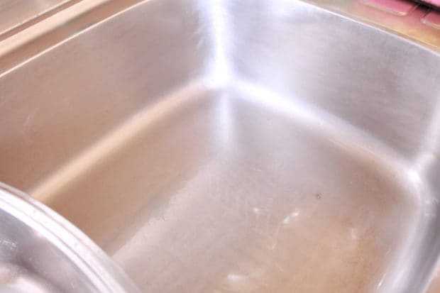 こちら、掃除前のシンクです。ところどころに水垢の白さが目立ちます。
