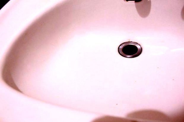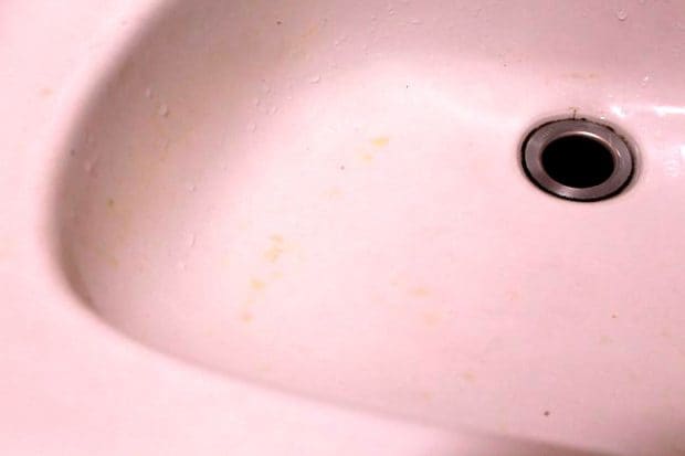 白い陶器の洗面台は、時折黄ばみができて気になりますよね。これ、こすってもなかなかとれずに困ります。