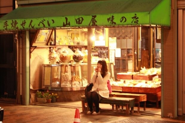 道の途中で昔ながらの建物に遭遇。ここは、昭和4年から続く、老舗のおせんべい屋さん「手焼きせんべい 山田屋」です。こちらでは、おせんべいを1枚30円~で販売しています。