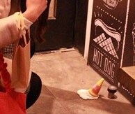 歩いていると、ソフトクリームが落ちていてビックリ! こちらは「Melting in the mouth(メルティングインザマウス)」いう、ソフトクリームのお店。よく見たらアイスクリームの模型でした。よくできてますね!